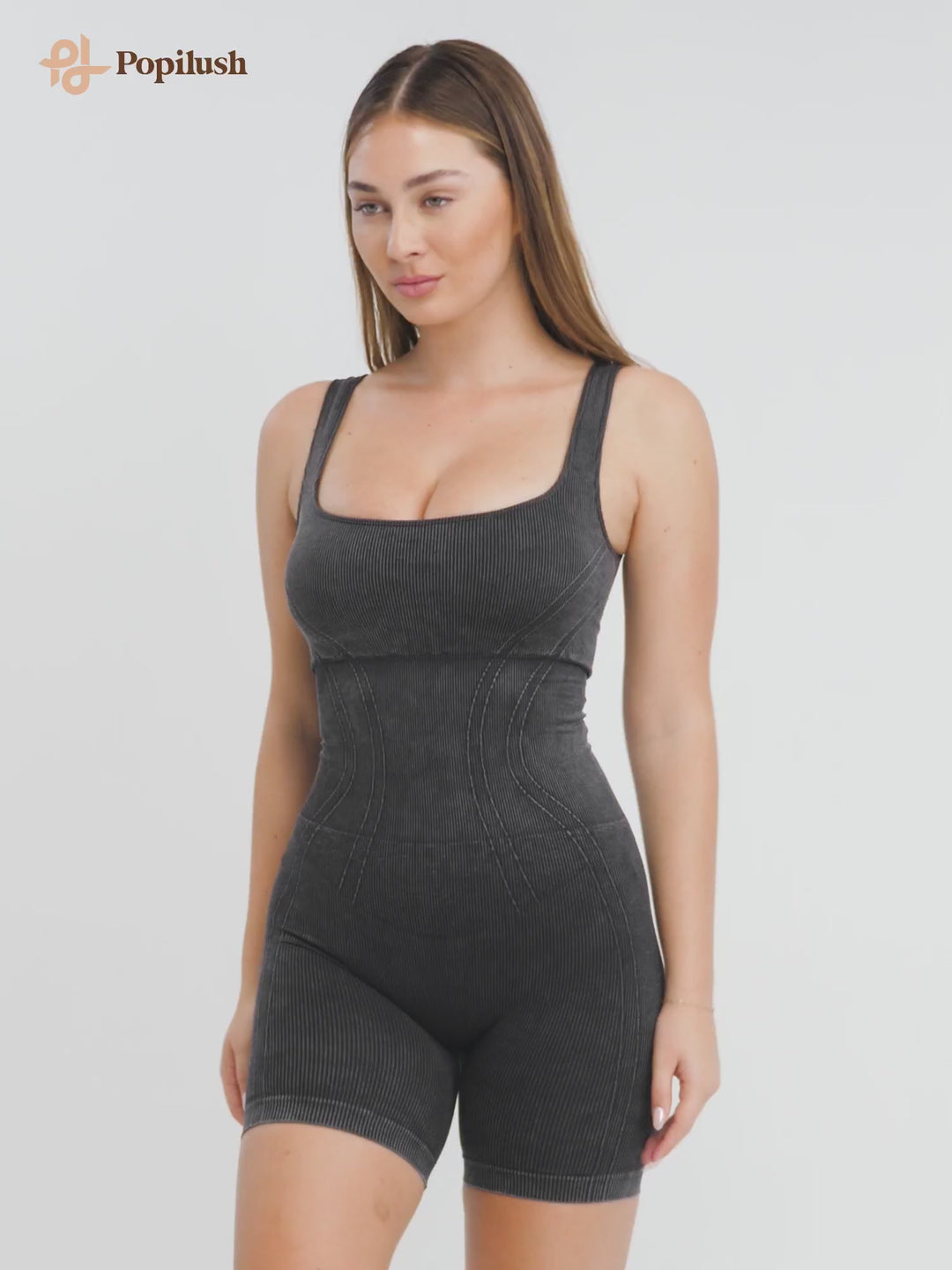 This Popilush Square Neck Sports Vest Romper is comfortable and breathable material suitable for any occasion. It can be matched with any jacket, suitable for fitness, parties and daily life.